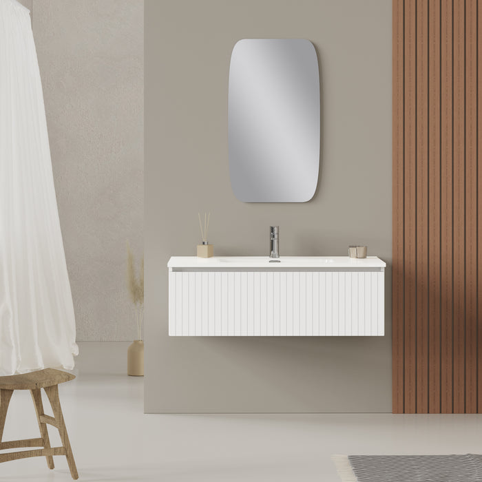 Linea Matt White Fluted Wall Hung Vanity Unit Including Basin 1000mm x 460mm