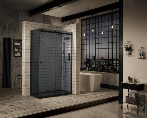 £1,220.99| /Sphere Matt Black Tinted Sliding Door Shower Enclosure 1200mm