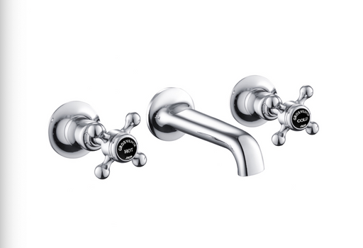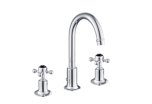 JTP presents the Grosvenor range featuring the black cross 3 hole basin mixer. Key Features: Brass with chrome finish + black cross Water Pressur...