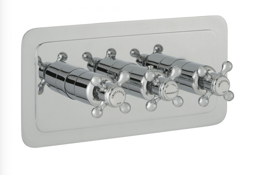 JTP presents Grosvenor featuring a Chrome Cross Thermostatic concealed outlet shower valve. Option of Outlet 2 or 3 Thermostat. Key Features: Wat...