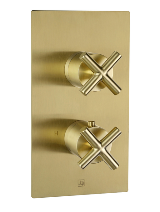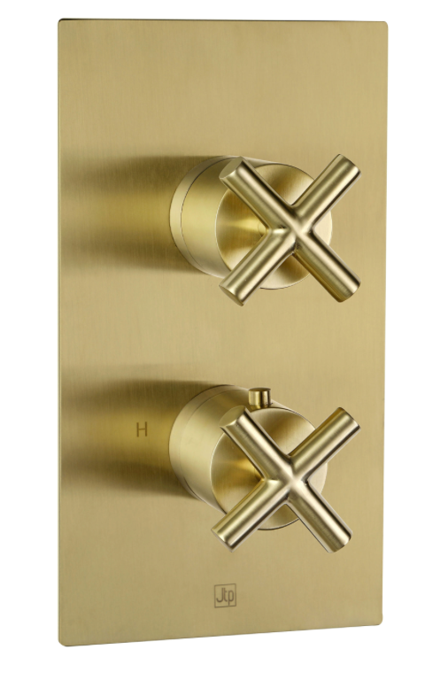 Original price £846.99Current price £538.99| /JTP Solex Brushed Brass Vertical Thermostatic Concealed 2 Outlet Shower Valve