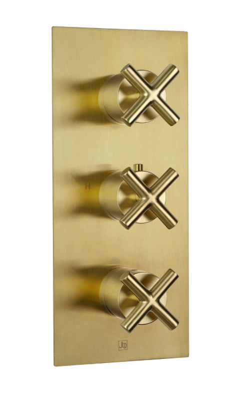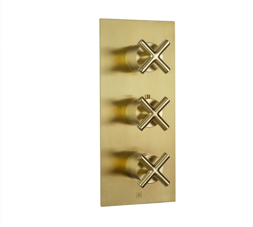 Original price £1,008.99Current price £593.99| /JTP Solex Brushed Brass Vertical Thermostatic Concealed 3 Outlet Shower Valve