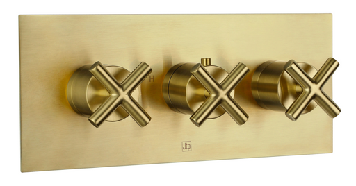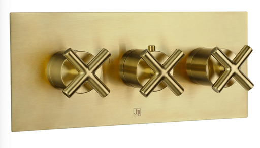 Original price £1,008.99Current price £593.99| /JTP Solex Brushed Brass Horizontal Thermostatic Concealed 3 Outlet Shower Valve