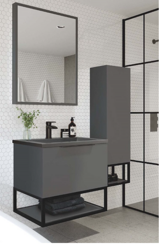 Ambience Matt Grey Tall Boy Cabinet 900mm Key features: 300 x 900 x 250mm Guarantee included Tall Wall Hung Cabinet Please Note: Black Frame S...