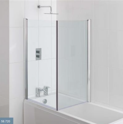Volente Chrome 2 Part Hinged Bath Screen 1550 x 1465mm Key features: 6mm Tempered Glass Chrome Finish Easy Clean Glass Suitable for bath with flat...