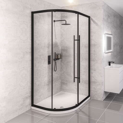 £779.99| /Vantage 2000 Matt Black Offset Quadrant Shower Enclosure 1200 x 900mm