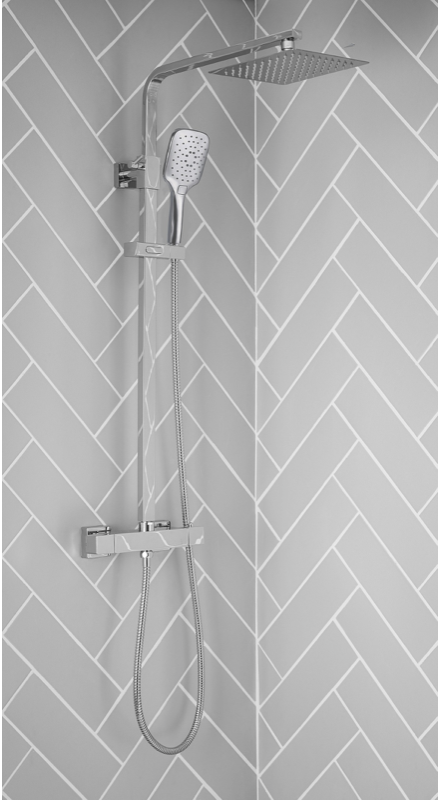 Flo thermostatic shower column with diverter and square 200mm shower head. Key Features: Made in Italy Complete shower system Chrome...