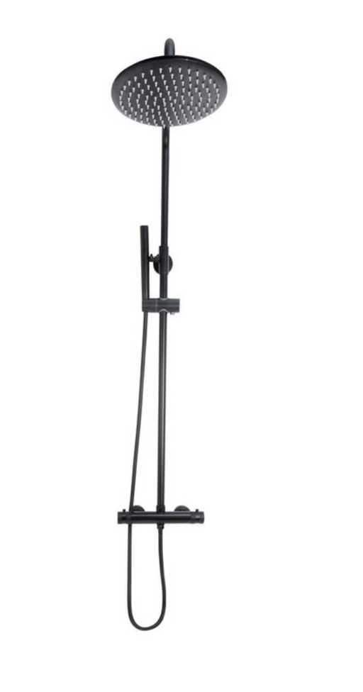 Middleton Noir Black Round Rigid Riser Shower Kit Key features: 200mm ultra thin solid metal fixed shower head Easy clean rubber nozzles on main s...