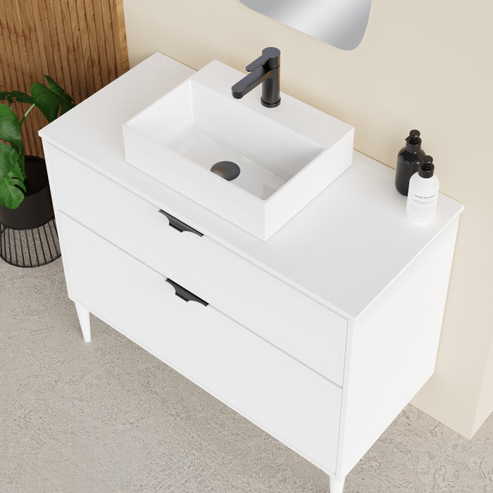 These vanity units are often constructed from durable materials such as MDF (medium-density fiberboard) ensuring longevity and resistance to moisture damage. The matt finish not only adds a sleek look but also helps to conceal fingerprints and watermarks, making maintenance easier.