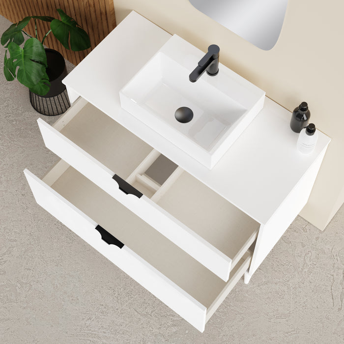 Features of a typical whiteåÊvanity unit may include soft-close drawers for quiet operation, integrated handles for a seamless appearance, and a spacious countertop for placing bathroom essentials or decorative items.