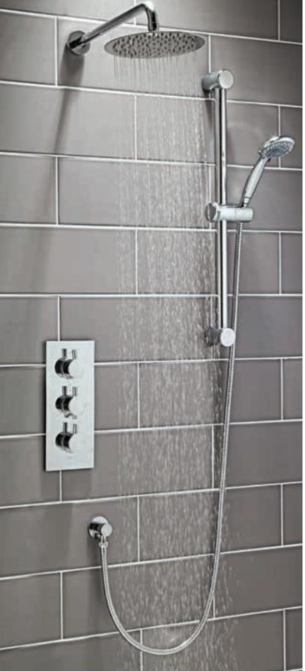 Component Round Triple Thermostatic Shower Valve with Shower Head and Riser Rail Kit Key features: Guarantee included Includes triple concealed...