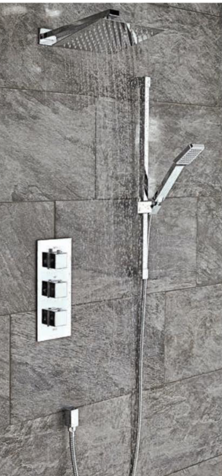 Component Square Triple Thermostatic Shower Valve with 200mm Shower Head and Riser Rail Kit Key features: Guarantee included Includes triple co...