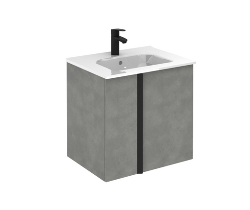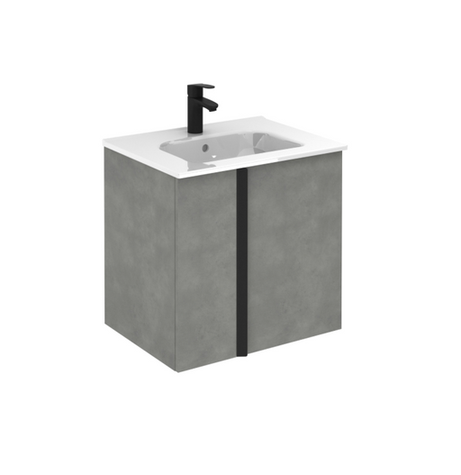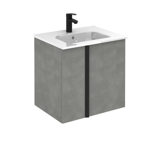 Onix Cement 610 Wall Hung Vanity with Slim Basin Key features: Available in 3 Finishes Includes Black Handle 2 Door Wall Hung Vanity