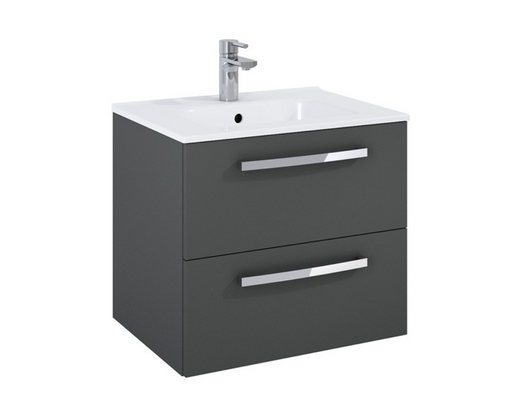 Aquatrend Matt Anthracite 515 Wall Hung Vanity with Basin Key features: Available in 5 Finishes Includes Chrome Handle 2 Drawer Wall Hung Vanity
