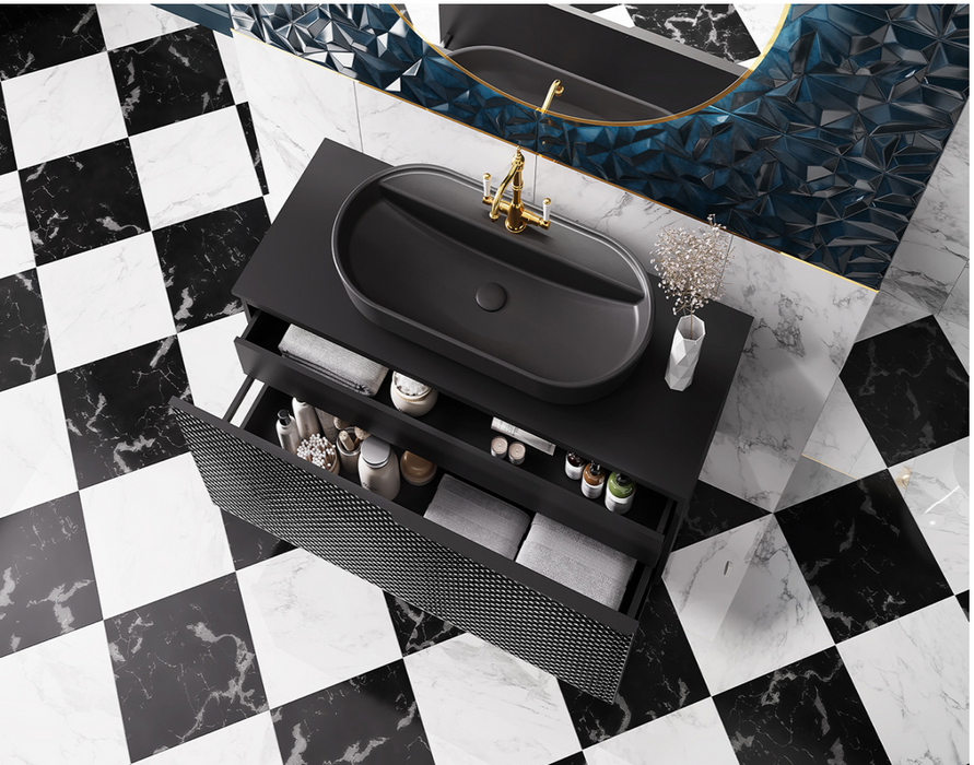 Glam Textured Noir 900 Wall Hung Vanity Unit with Worktop