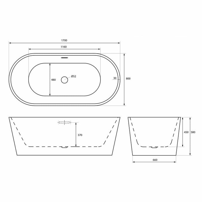 Trojan Hampton Traditional Classic Soak Bath with Waste 1700 x 800mm