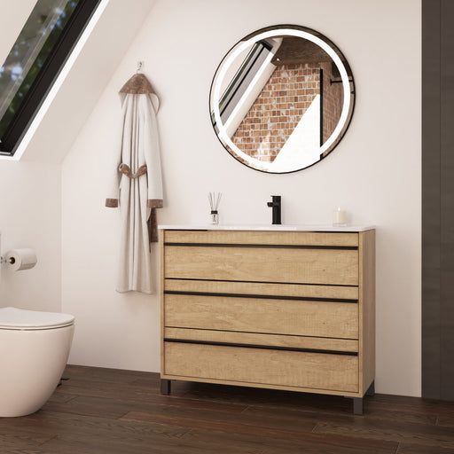 £637.99| /Mattila Noir 1000mm Floorstanding Vanity Unit with Matt Black Handles - Rustic Oak