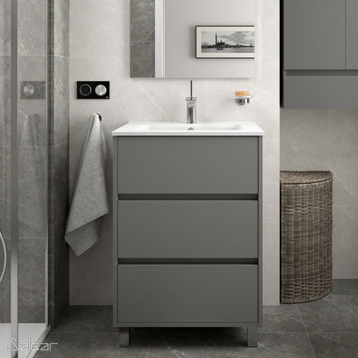 Original price £659.99Current price £395.99| /Arenys 600mm Matt Grey Floorstanding Vanity Unit + Basin