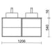 Suspended furniture of 600mm (x2) and comes with a depth of 450mm.