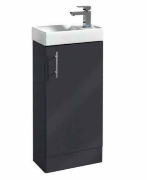 Lanza Anthracite 400 Floor Standing Cloak Vanity with Basin Key features: 18mm solid carcass Soft close doors 1 Tap hole Ceramic Basin Door can b...