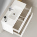 Features of a typical matt white vanity unit may include soft-close drawers for quiet operation, integrated handles for a seamless appearance, and a spacious countertop for placing bathroom essentials or decorative items.
