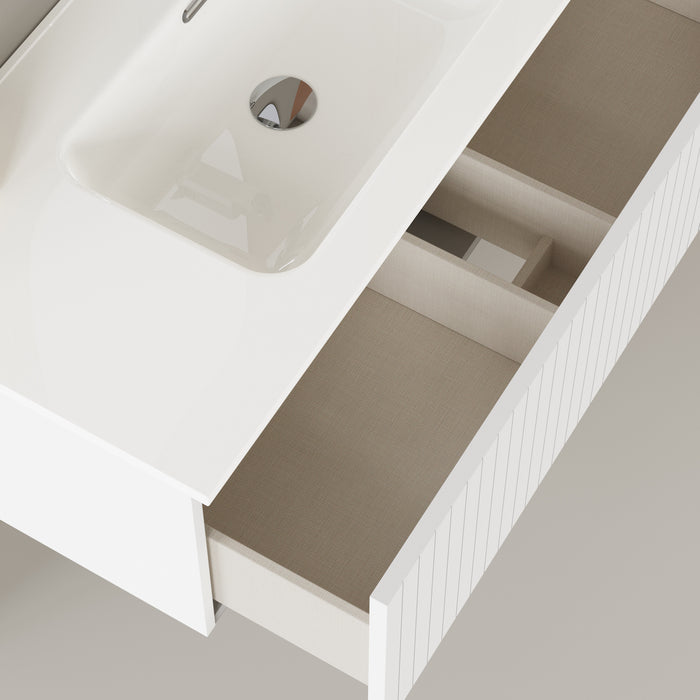 Linea Matt White Fluted Wall Hung Vanity Unit Including Basin 1000mm x 460mm