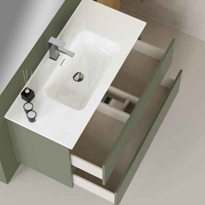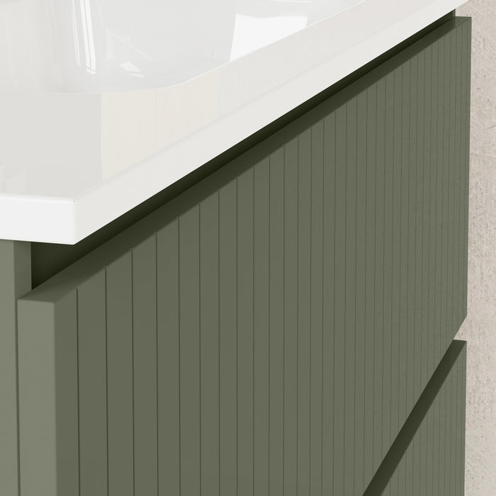 Linea Muscat Sage Fluted Double Drawer Wall Hung Vanity Unit Including Basin 1000mm x 460mm