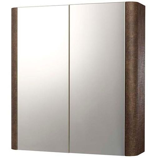 Linen Textured Rust Brown Finish 600 x 650 x 160mm Mirror Wall Storage Cabinet