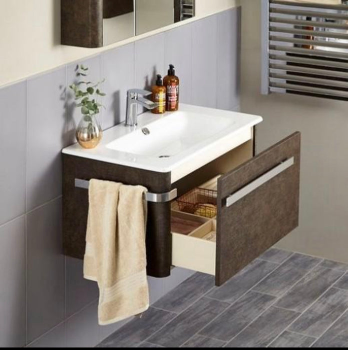 The unit comes with 1 soft close drawer and is 400mm in height and 477mm in depth. Bringing a new but elegant theme to your bathroom. The handle is also a 2 in 1 towel rail, which helps save space in your bathroom. Internal dividers are also available for drawer storage. The sink is ceramic and is specifically designed for this type of unit, compliment your bathroom today with this linen finished bathroom cabinet.