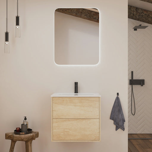 £494.99| /Optim Noir 600mm Wall Hung Vanity Unit + Basin - Natural Oak