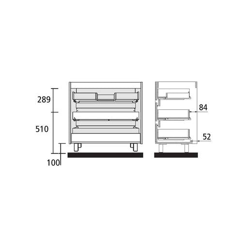 The unit consists of 3 Drawers and a Vilna No Tap Hole Basin.