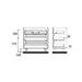 - Front and sides made of 16 mm laminated particle board (class E-1) with PVC edges (and PUR glue).