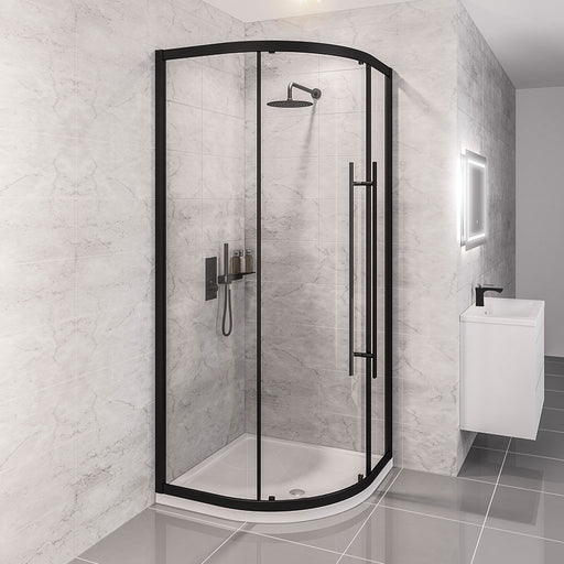 Vantage Mat Black Quadrant Shower Enclosure 900mm Key features: Matt Black Finish 6mm Tempered Glass 2000mm High 10 Years Guarantee Easy Clean