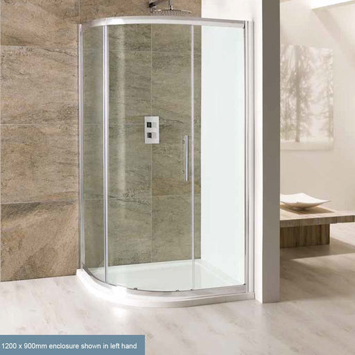 Volente Single Door Offset Quadrant Shower Enclosure 1200 x 900mm Key features: Clear Glass Finish 6mm Tempered Glass 1850mm High 10 Years Guaran...