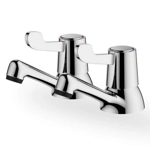 The Lodare bath pillar taps, the lever style creates an uncomplicated modern styling. Chrome finish Quarter turn ceramic disc valve