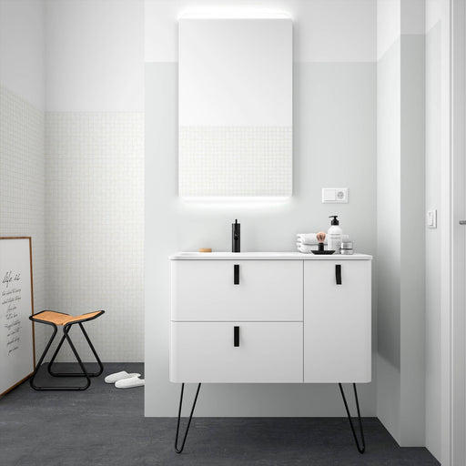 Original price £1,190.99Current price £714.99| /UNIIQ Sketch 900 x 450mm Wall Hung Vanity Unit with Basin - Right Handed Matt White