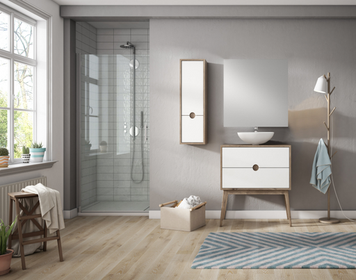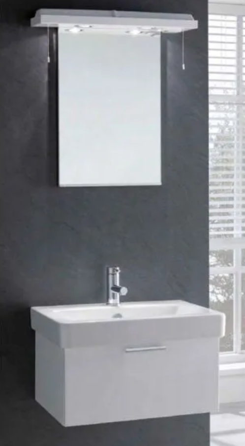 Kompass White/Oak 800 Wall Hung Vanity Unit with Counter Top Basin Key features: Floor Standing Legs Sold Separate 800 x 480 x 450mm Guarantee in...