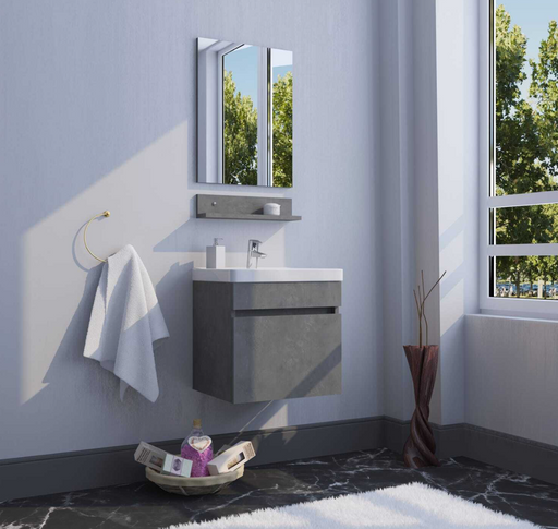 Holla Concrete Grey 500 Wall Mounted 1 Door Basin Vanity Key features: Birch Ceramic Material Concrete Finish Basin and Vanity Included 500 x ...