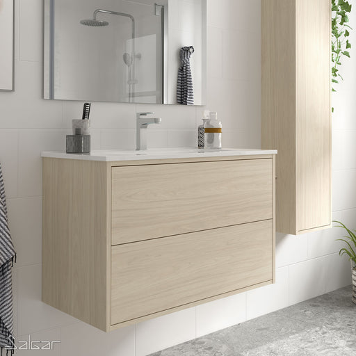 Original price £681.99Current price £483.99| /Optimus 800 Wall Hung Vanity Unit + Basin - Nordick Natural Oak