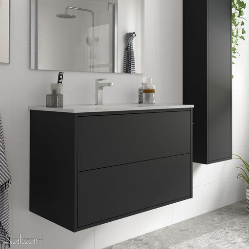 Original price £784.99Current price £549.99| /Optimus Noir 1000 Wall Hung Vanity Unit + Basin - Matt Black