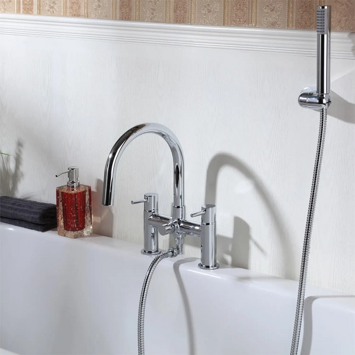 The Aber bath shower mixer complete with shower handset, offers complete bathing and gives a fresh and trendy feel to any bathroom.