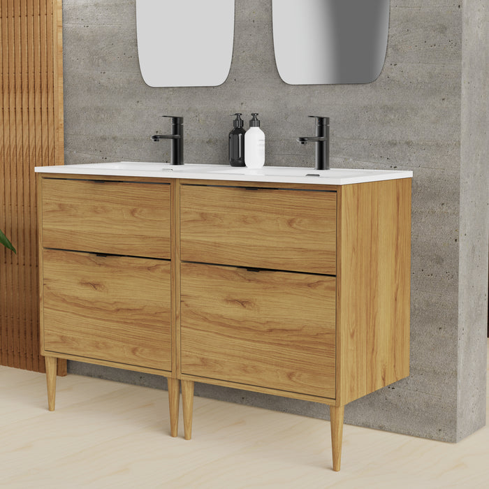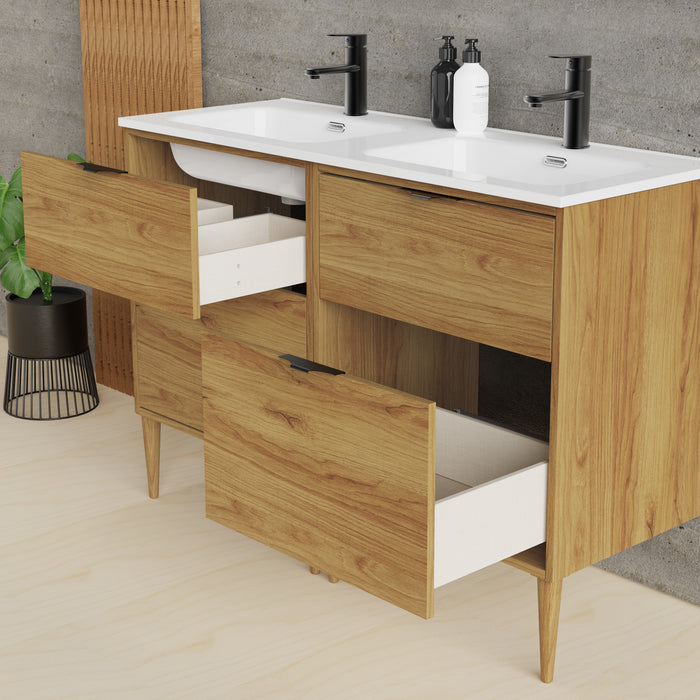 Noir Krafter 1200mm Caramel Oak Wall Hung Vanity Unit including Double Basin