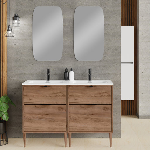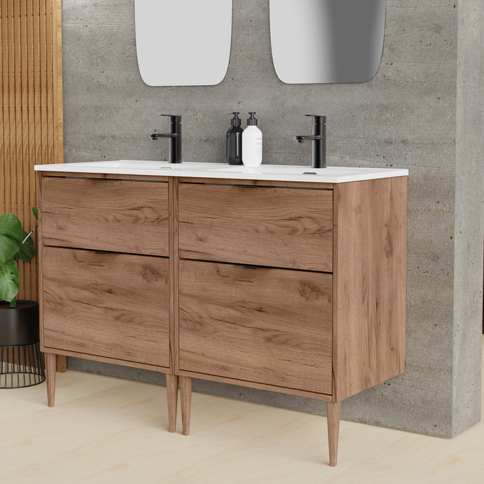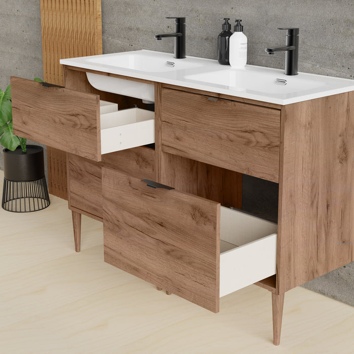 Noir Krafter 1200mm Exotic Walnut Wall Hung Vanity Unit including Double Basin