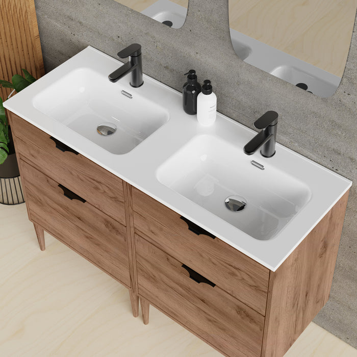 Features of a typical oak vanity unit may include soft-close drawers for quiet operation, integrated handles for a seamless appearance, and a spacious countertop for placing bathroom essentials or decorative items.