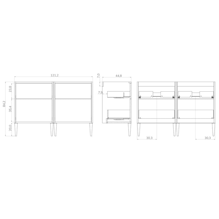 - Bathroom cabinet suspended with two drawers and two decorative legs