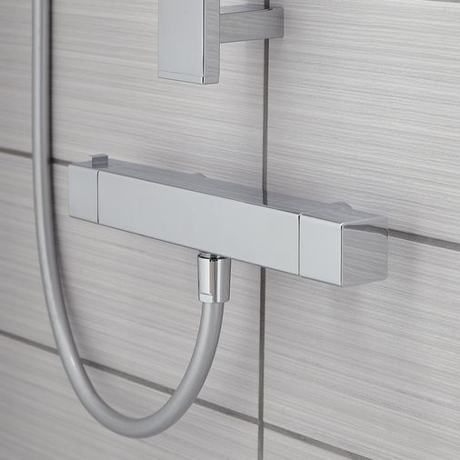 The Blade thermostatic Touch Safe mixer has an ultra-modern, square design. It gives you precise control over the temperature of the water that emerges from your showerhead.