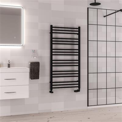 Corinium Matt Black Round Multi Towel Radiator 1200 x 500mm