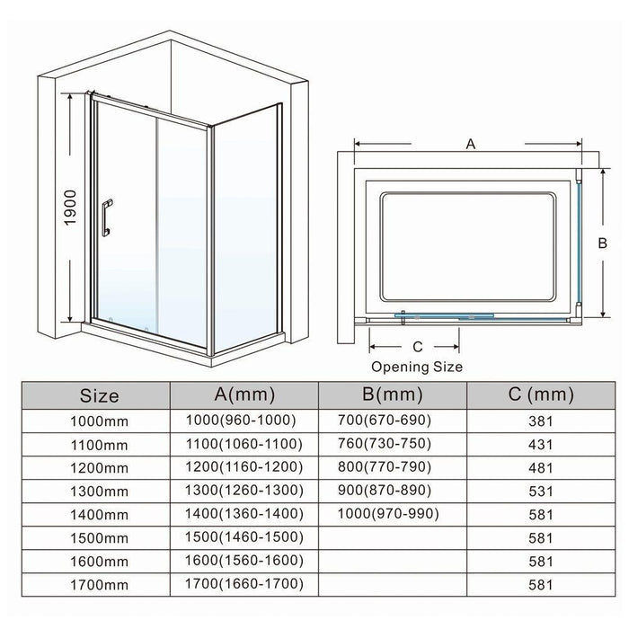 Elle 1000x800mm Sliding Shower Enclosure 6mm Tempered Glass Shower Cubicle