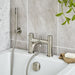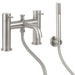 This deck mounted mixer allows you to control water temperature for both a tap outlet and shower handset. It is operated using two handles: one controls cold water while the other controls hot water. It also includes a simple mechanism that allows you to switch the flow of water between the handset and tap.