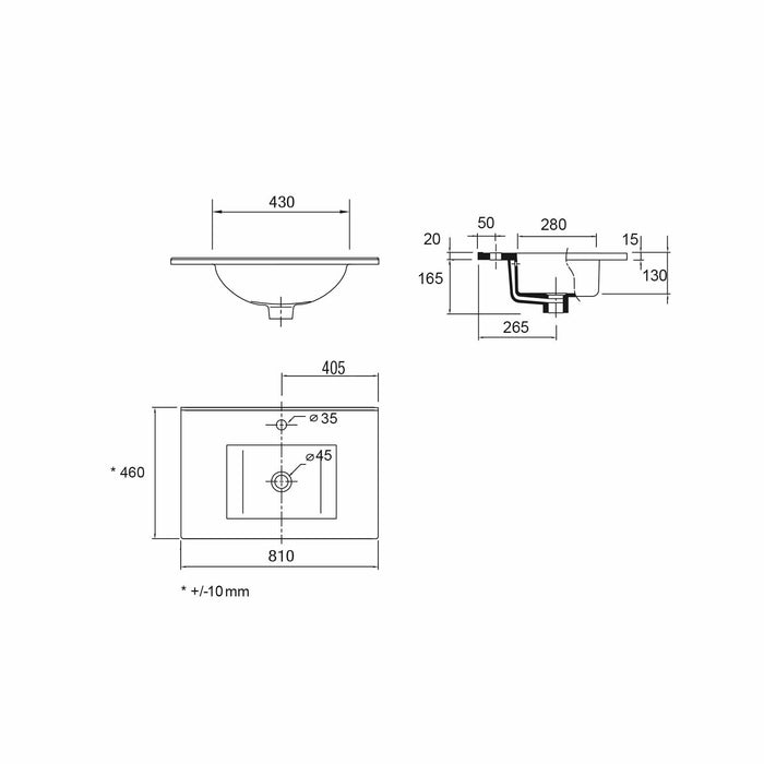Iberia 810 mm (1 sink) = 800 mm furniture unit